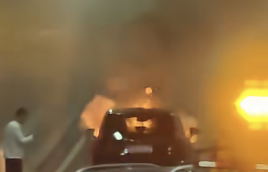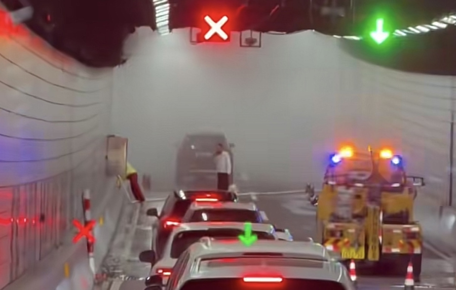 下午4时10分,现场开通2号车道,下午4时30分张吧策路,事故车辆被牵出隧道,现场通行恢复正常。目前,车辆起火原因正在调查中。