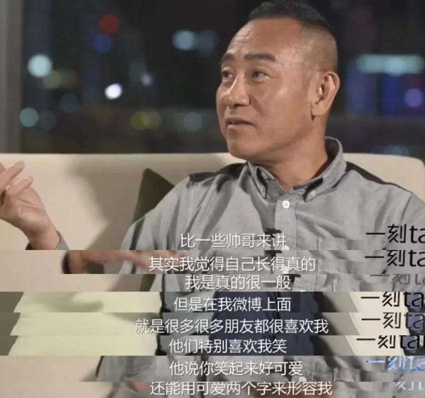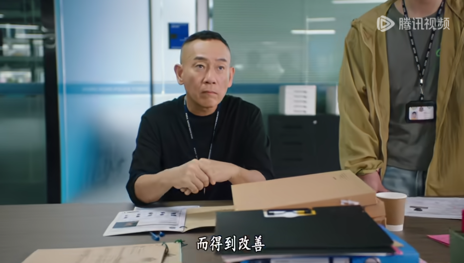 虽然正面近景范儿还在,不太显现「杀猪刀」的威力,但一到关照全身的远景镜头,发量微少、肚腩微凸,无一不渗透着中年大叔疲惫的社畜感。