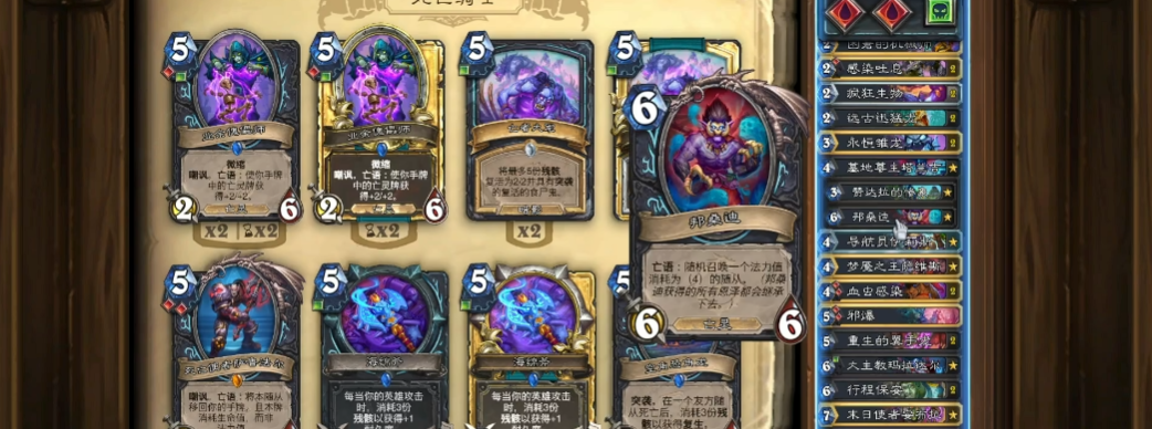 然后说说邦桑迪DK,虽然卡组还是以前的那样,只是新加入了一张邦桑迪,但这张卡很牛!它能盘活整个卡组,而且最为关键的是胜率相当的高,喜欢DK的玩家不妨尝试一下。